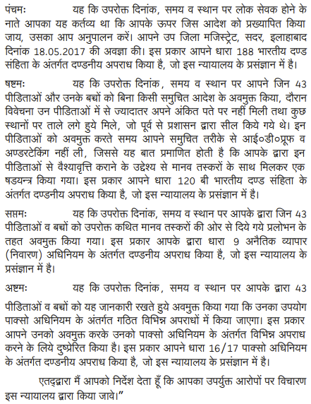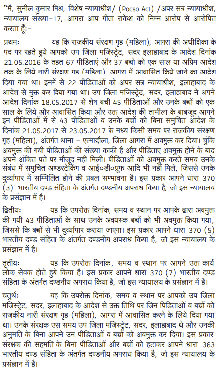 2. This criminal appeal is directed against the judgment and order dated 6.10.2018, passed by the Special Judge (POCSO Act)/VIII Additional Sessions Judge, Agra in Special Trial No. 1848 of 2017 arising out of Case Crime No. 455 of 2017, under Sections 370(3), 370(5), 370(7), 363, 188, 120B IPC; 9 Immoral Traffic (Prevention) Act and Section 16 /17 POCSO Act, Police Station - Etmaddaula, District Agra; whereby the appellant Smt. Geeta Rakesh has been convicted under Section 370(3) IPC and sentenced to 10 years rigorous imprisonment alongwith fine of Rs. 50,000/- and on its failure to undergo additional rigorous imprisonment of six months; under Section 370(5) IPC sentenced to 14 years rigorous imprisonment alongwith fine of Rs. 1,00,000/- and on its failure to undergo additional rigorous imprisonment of one year; under Section 370(7) I