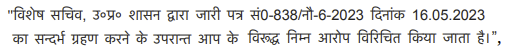 Hon'ble J.J. Munir, J.-The petitioner is a Senior Clerk in the employ of the Nagar Palika Parishad, Siswa Bazar, District Maharajganj. He was appointed to a Class-III post in the regular cadre on 22.2.1989 in accordance with rules. A complaint was lodged by one Shesh Nath, a resident of Senani Nagar, Ward No. 12, Nagar Palika Parishad, Siswa Bazar, District Maharajganj with the District Magistrate, Maharajganj on 13.2.2023, where the crux of the allegation was that the civil work, that had already been done, was re-advertised by the President and the Executive Officer of the Nagar Palika Parishad for a fresh contract through e-tendering. The District Magistrate, Maharajganj directed an inquiry to be made into the complaint by a Committee comprising the Sub Divisional Magistrate, Nichlaul, Maharajganj and the Executive Engineer, Jal Nigam (Rural). This was apparently a preliminary inquiry ordered by the District Magistrate into the complaint aforesaid. The Committee comprising the Sub Divisional Magistrate and the Executive Engineer submitted an inquiry report dated 16.2.2023 to the District Magistrate, Maharajganj. The District Magistrate, on the basis of the aforesaid in