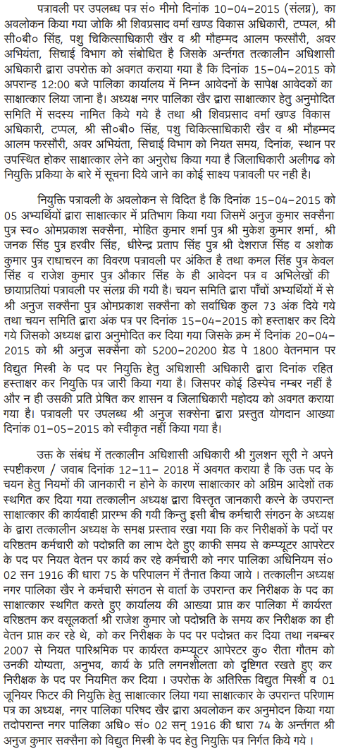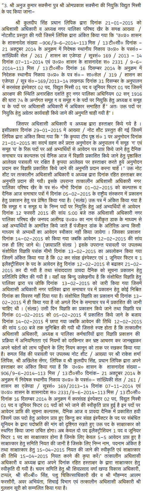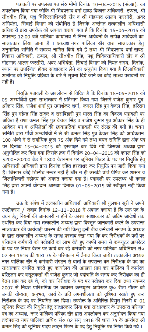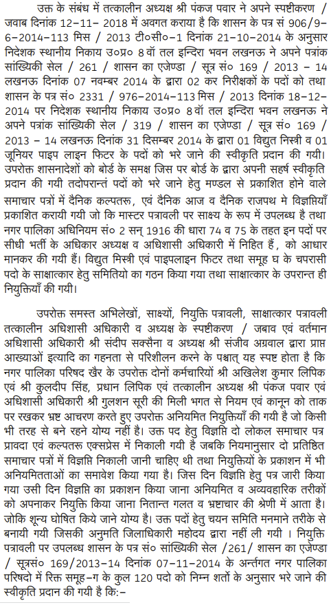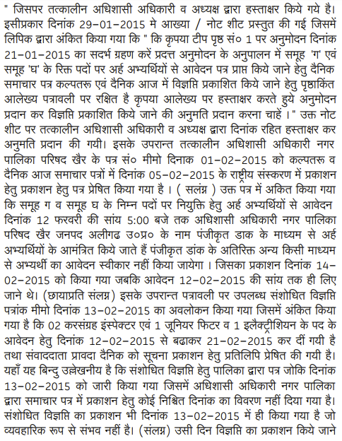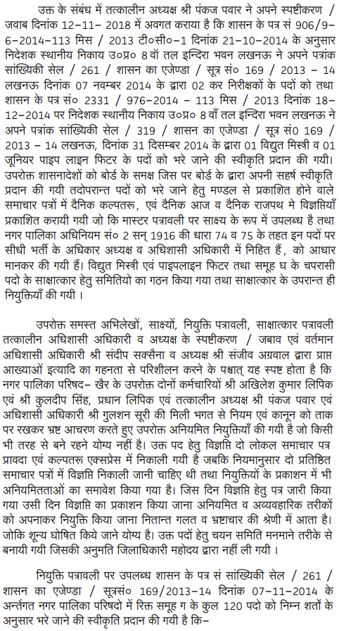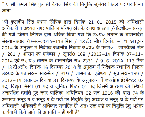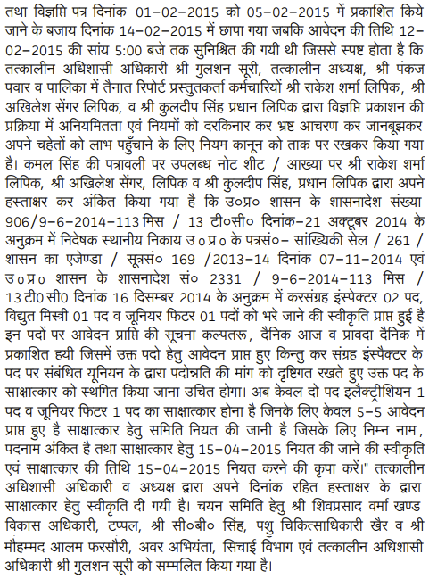 2. The Director (Local Bodies), Government of U.P., Lucknow by his letter dated 31.12.2014 issued to the Presidents and the Executive Officers of various Nagar Palika Parishad across the State, whose list is appended to the letter, informed that 345 technical posts of Class-IV are lying vacant and directed the Presidents and the Executive Officers to pro