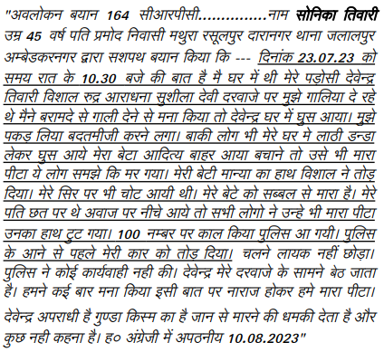 4. Facts in brief are to the effect that the FIR No. 0228 of 2023 was lodged on 24.07.2023 at 13:15 Hours under Section 147, 323, 325, 427, 452 IPC by the informant-Pramod Tiwari against Devendra Tripathi, Vishal Tripahti, Rudra Tripathi, Aradhana Tripathi and Susheela. Column No. 3 of the FIR does not indicate date of the alleged incident.