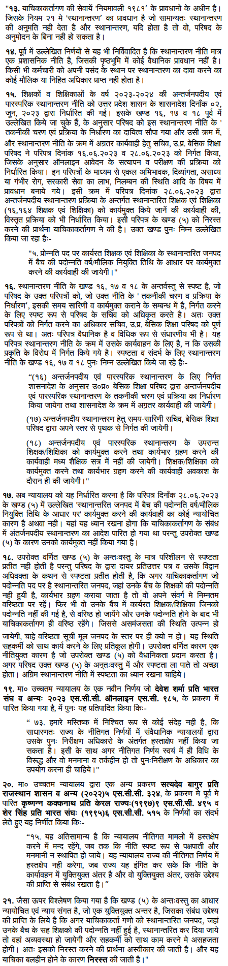 3. The present intra-Court appeal is directed against the judgment and order dated 5.1.2024, passed by a learned Single Judge, in Writ-A No. 20779 of 2023 [Naveen Kamal Srivastava and 2 others v. State of U.P. and others], praying for modification of the judgment and order and to allow the writ petition in toto with a further prayer for a direction that the petitioner-appellants would be entitled to avail all benefits flowing from sanction orders dated 26.6.2023 sanctioning their transfers.