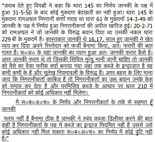 4. The Consolidation Officer vide order dated 20.12.1972 has accepted objections filed on behalf of father of original petitioners and name of original respondent no.2 (Janki) was expunged from revenue records. Relevant finding is mentioned hereinafter: