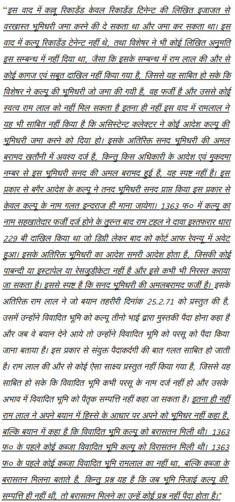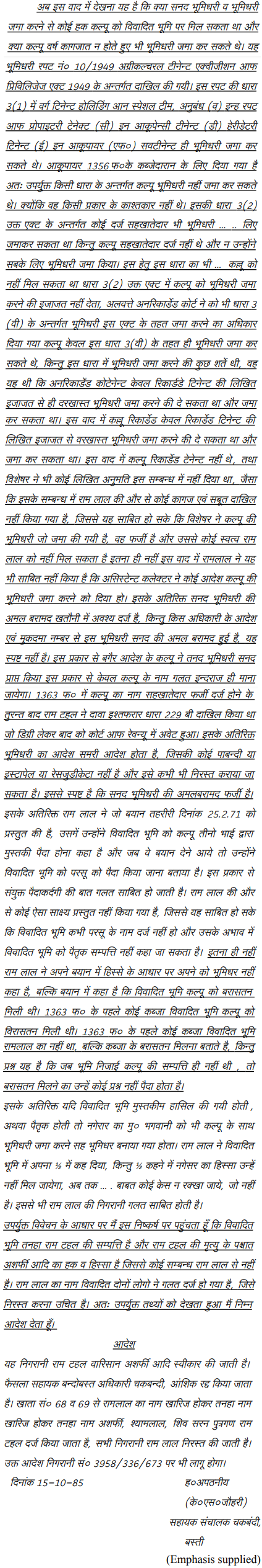 It is worthy to note that on the death of a female bhumidhar succession to holding goes not to her heirs but to "nearest surviving heir of the last male bhumidhar". In other words it is the heirs of ....