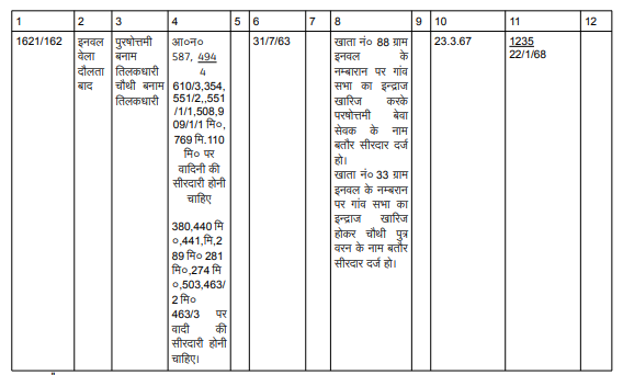 4. Brief facts of the cases are that the suit under Section 229-B of U.P. Zamindari Abolition & Land Reforms Act, 1950 (hereinafter referred to as "U.P.Z.A. & L.R. Act") was filed by Purshottami as well as Chauthi impleading the State and Gaon Sabha as defendants. The suit filed by Purshottami was registered as Suit No.150/235/75 and the suit filed by Chauthi was registered as Suit No.151/1977 pleading that plaintiffs are Sirdar of the plot in question and they are in possession of the plot in question for last 30 years. They further pleaded that in the proceeding