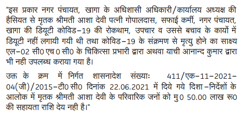A deceased government employee who succumbed to COVID-19 while on duty should be recognized as a Covid-19 Warrior under the government's guidelines, and the rejection of entitlement based on contradi....