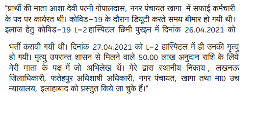 1. The Covid-19 pandemic, that ravaged humanity during the years 2020-21 across the world, is unprecedented for its destruction, death, loss of livelihood, business and many such things in the history of mankind. While it brought on immense tragedy for those who lived on to see another day, the misery was sought to be alleviated by the Government of India and the State Governments, lending a helping hand to support the survivors. Whatever could serve as measures of relief were taken by Governments to bring life back on track for various classes of people. There were certain classes of men and women, according to their profession, who had to work for others by the nature of their calling, even when most others, for the sake of dear life, were virtually confined to their homes due to lock-downs. These classes of persons, who had to still work on for humanity's sake, comprised not only of a certain category of government servants, but also employees of corporations, the private sector and the self-employed. They shared a common genre to their calling, whosoever was their employer. They were generally doctors, health workers other than doctors, policemen, and, p