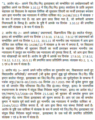 1. This judgment will dispose of Writ-A No.15765 of 2014 and Writ-A No.51031 of 2015 but not Writ-A No.20351 of 2022. Writ-A No.15765 of 2014 has been instituted by Jai Prakash, a class IV employee with the Vikramaditya Inter College, Sikandra, Allahabad (now Prayagraj), which was earlier called the Janta Inter College, Sikandra, Allahabad. The petitioner, Jai Prakash, questions through this writ petition the order dated 01.12.2014 passed by the Principal of the aforesaid College, removing him from service after holding disciplinary proceedings. Writ-A No.51031 of 2015 has been instituted by Nanku Ram, another Class-IV employee, a Mali, with the Vikramaditya Inter College, Sikandra, Allahabad (for short, 'the Institution'), impugning the order of the Principal of the Institution dated 07.10.2013, terminating his service, also after holding disciplinary proceedings. Also under challenge in this writ petition by the petitioner is the order of the Committee of Management of the Institution dated 19.07.2015, dismissing his appeal from the Principal's order, terminating his services. Writ-A No.20351 of 2022 has been instituted by Nanku Ram and Jai Prakash jointly