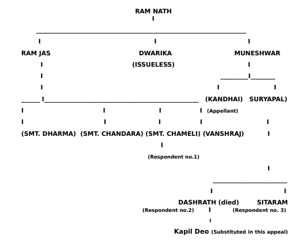 2. This second appeal under Section 100 of CIVIL PROCEDURE CODE has been preferred against the judgment and decree dated 23.10.2023, passed in Civil Appeal No. 36/2012; Kandhai versus Smt. Chameli and others by Additional District Judge Court No. 4, District Faizabad affirming the judgment and decree dated 10.02.2012 passed in R.S 334 of 2001; Smt. Chameli Devi versus Kandhai and others by Additional Civil Judge, Senior Division, Court No. 14, Faizabad.