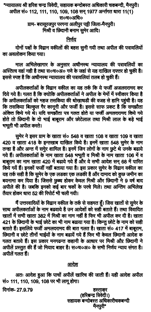 The court ruled that title objections under the U.P. Consolidation of Holdings Act must be decided on merit, emphasizing the need for proper jurisdiction and evidence rather than relying on alleged c....
