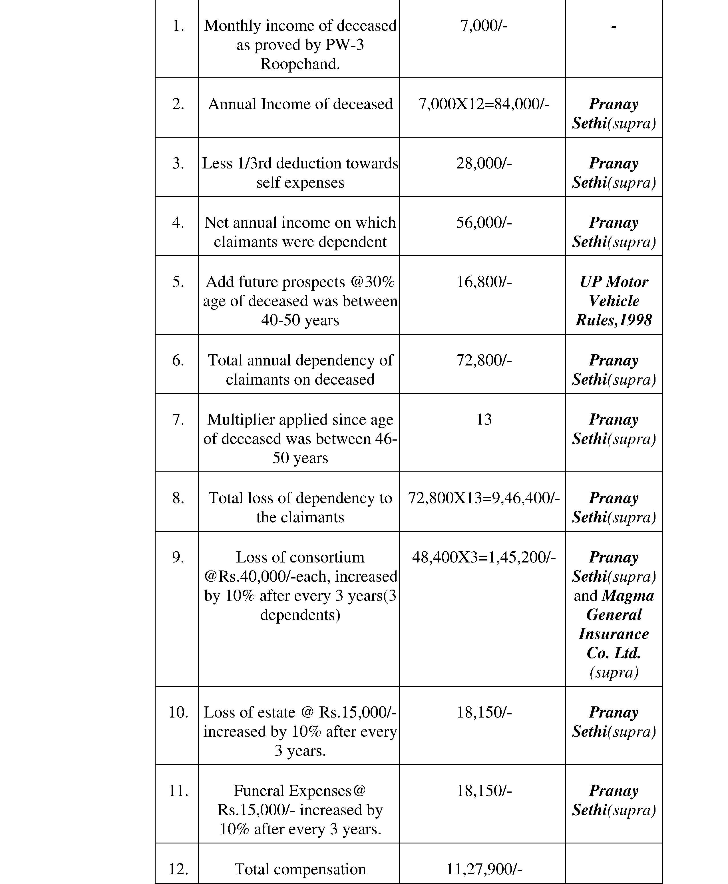 The main legal point established is the determination of compensation amount under the Motor Vehicles Act by considering various judgments.