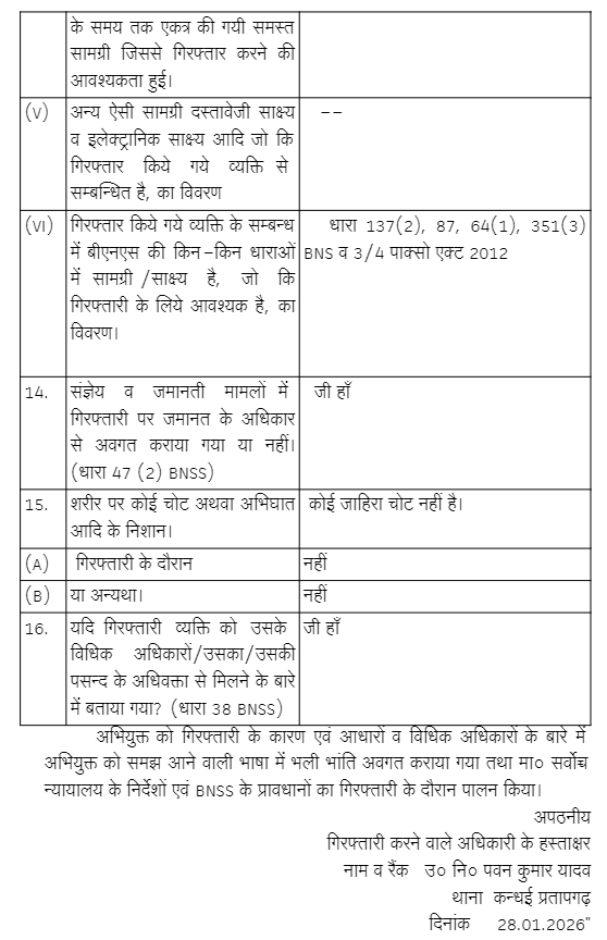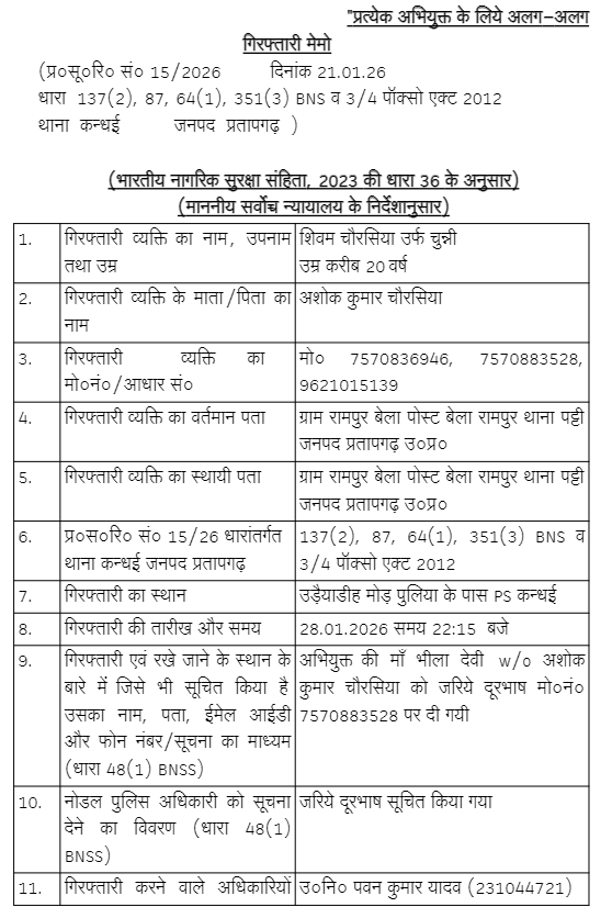 (B). Allow this petition, declare the petitioner's arrest illegal, pass an order (s) quashing the arrest memo dated 28.01.2026 drawn regarding Case Crime No. 15/2026 registered at Police Station- Kandhai, Pratapgarh, U.P. alleging offences punishable under sections 137 (2), 87, 64 (1), 351 (3