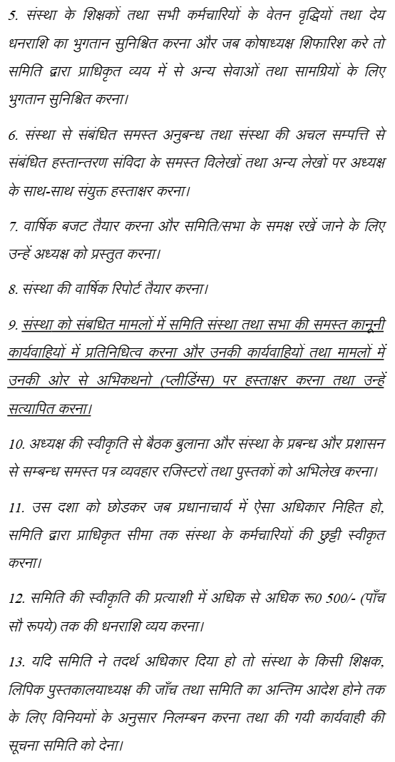 3. Sri R.K. Ojha, learned Senior Advocate assisted by Sri Avneesh Tripathi, learned counsel for petitioners, has submitted that there is a Scheme of Administration to run various affairs of the College through Committee of Management, which also provides responsibility and powers of each Office Bearer. The Manager of Committee of Management has wide powers and responsibilities including being authorized to sign pleadings etc. on its behalf. For reference r
