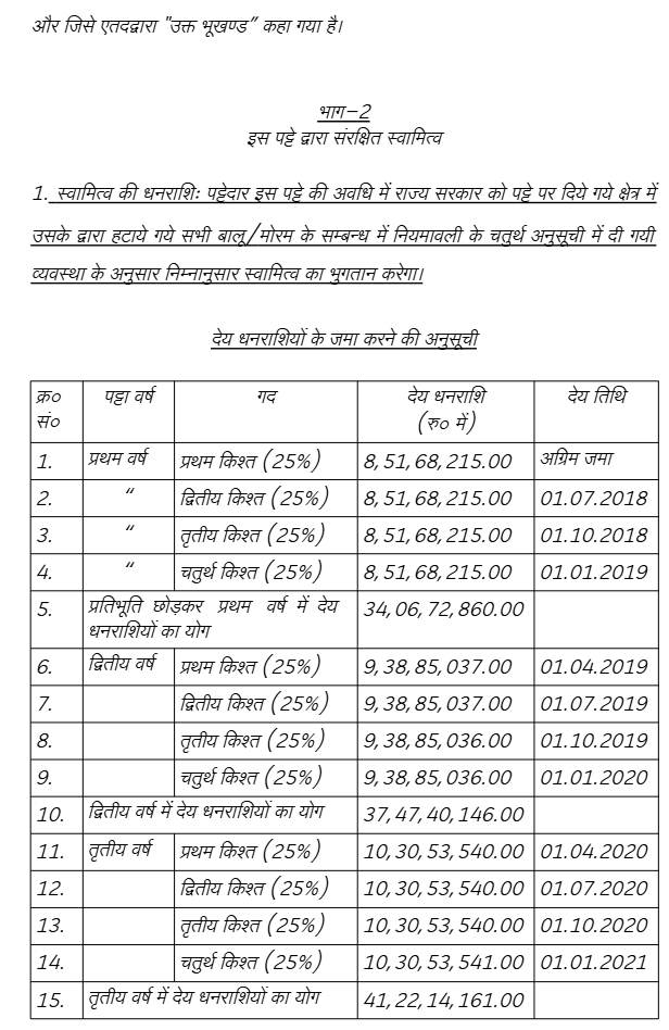 The authority can forfeit a mining lease security deposit for non-payment of lease installments under the terms established in the lease agreement, affirming contractual obligations.