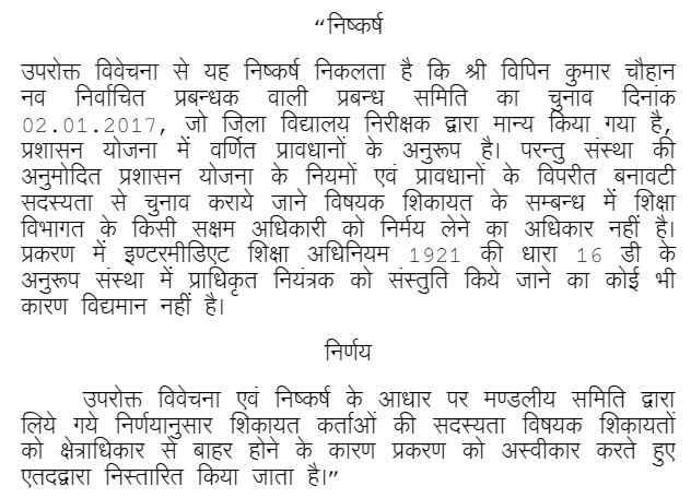 Elections for the Committee of Management of an educational institution must be conducted in accordance with the approved Scheme of Administration, and the provisions of the Uttar Pradesh Intermediat....