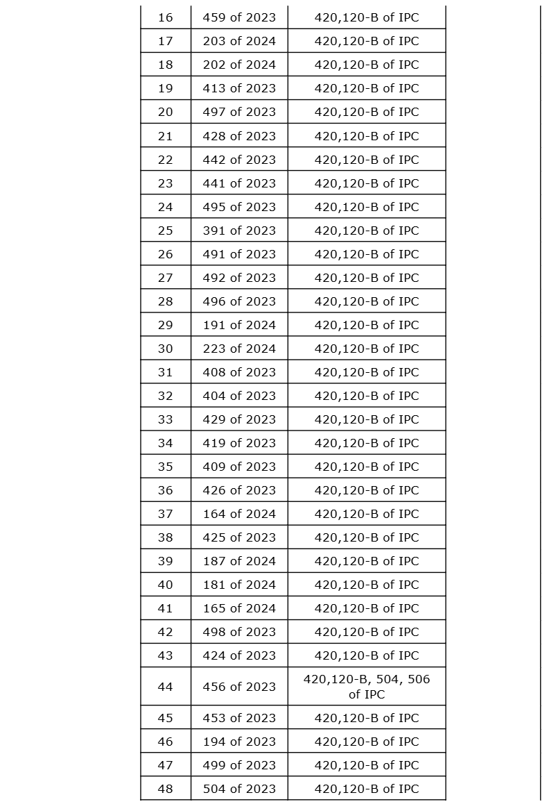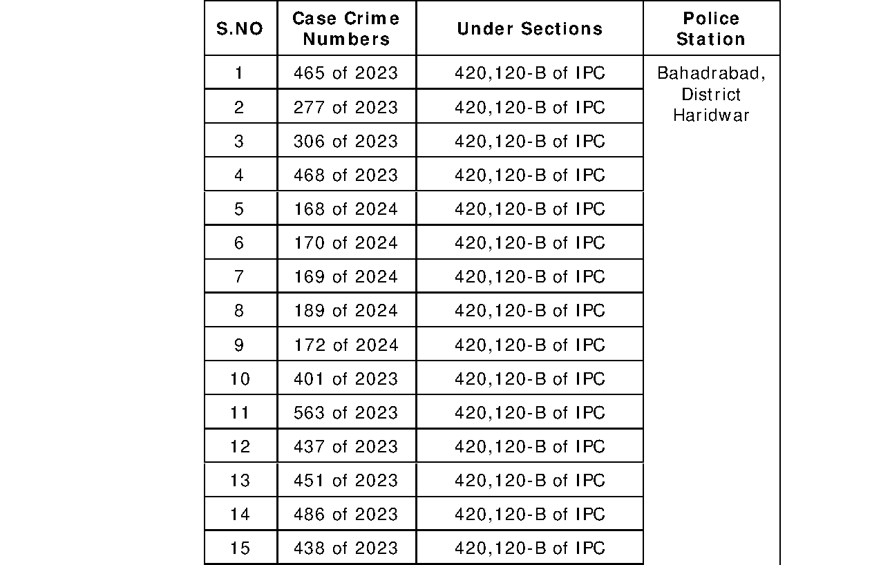 2. The brief facts of the case are that multiple FIRs have been lodged against the Applicant at Police Station Bahadrabad, District Haridwar, for offences under Sections 420, 120-B, 504, 506, 427 & 406 of the IPC. The total number of cases stands at 120. The Applicant contends that he is Director of the company, namely, M/s Octagon Builder and Promoters Private Limited, but he could not complete the project. Multiple F.I.R.s have been lodged against him, which are similar in nature.