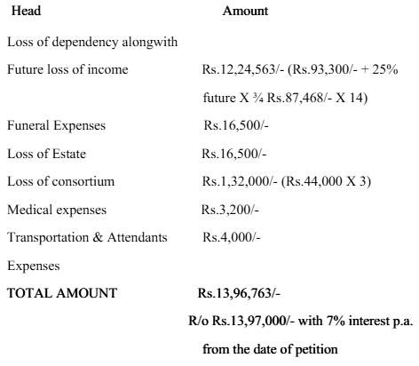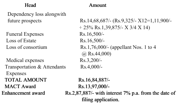 4. The tribunal framed issues and after taking evidence and hearing counsel for both parties, allowed the claim petition filed by appellants No.1 to 4 and awarded