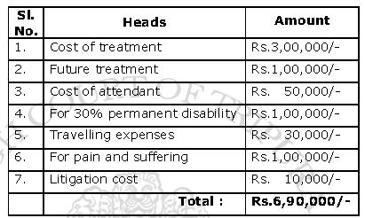 The main legal point established is the assessment of compensation for permanent disablement and medical treatment under the Motor Vehicles Act, based on medical evidence and relevant legal principle....