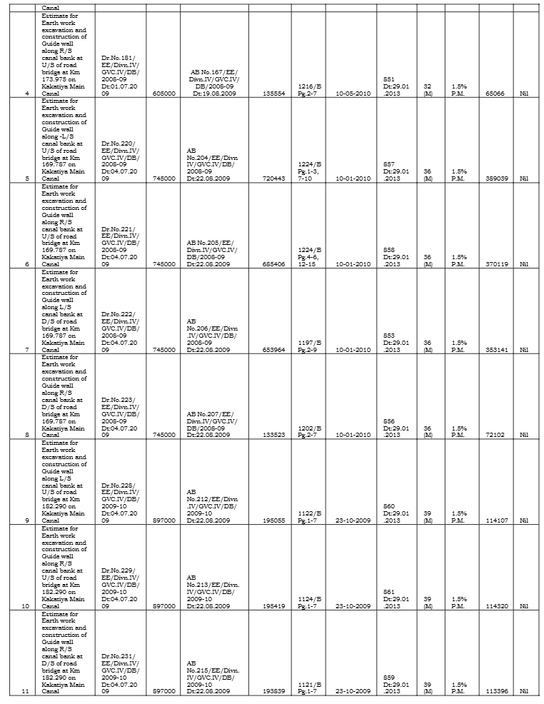 3.2. It is stated in the plaint that the respondent-plaintiff is a registered Contractor and executing works under various Departments including SRSP. Appellant No.4-defendant No.4 entered into contract for execution of (11) works. The (11) works are as under: