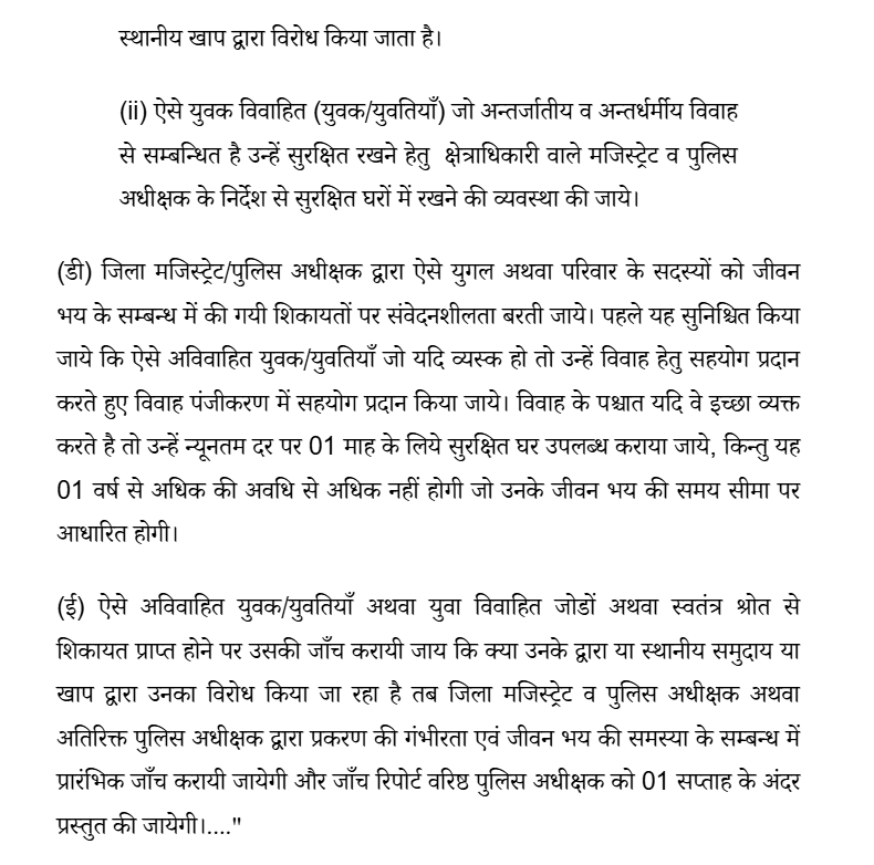 "I. Issue a writ order or direction in the nature of Writ of Mandamus commanding and directing the respondent No.1 to 3 to protect the life of the petitioners and also direct the respondent No.2 & 3 to grant protection to the petitioners from illegal hindrance of respondent No.4 in peaceful marital life of the petitioners and not to harass the family members of the petitioner No.2."