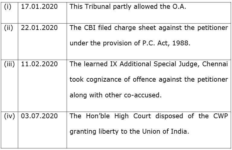 2. The Original Application No. 060/888/2019 filed by the applicant/petitioner, seeking consideration for promotion to the post of Additional Plant Protection Advisor (in short „APPA‟) against the vacancy year 2016-17 onwards as well as consideration for issuance of vigilance clearance certificate, was partly allowed by this Tribunal vide order dated 17.01.2020 with the following directions:-
