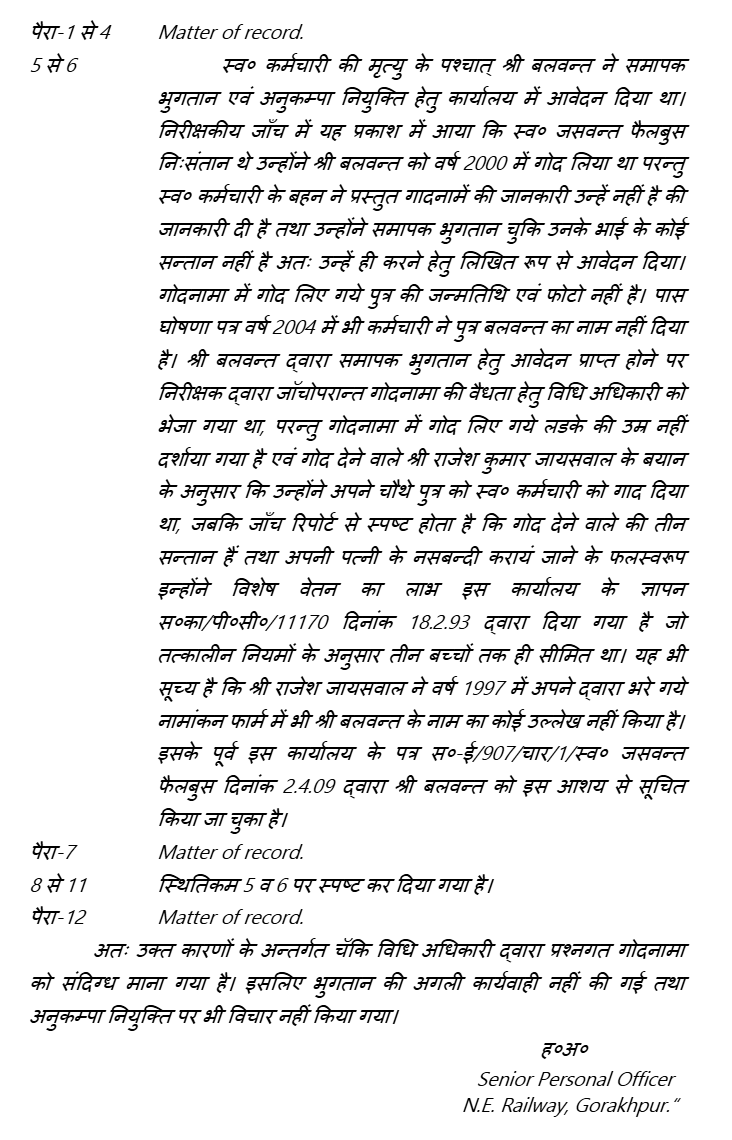 2. The brief facts of the case are that the applicant, Balwant, aged about 19 years, son of Late Jaswant Failbus, has approached this Tribunal under Section 19 of the Administrative Tribunals Act, 1985 . He seeks a direction to the responde