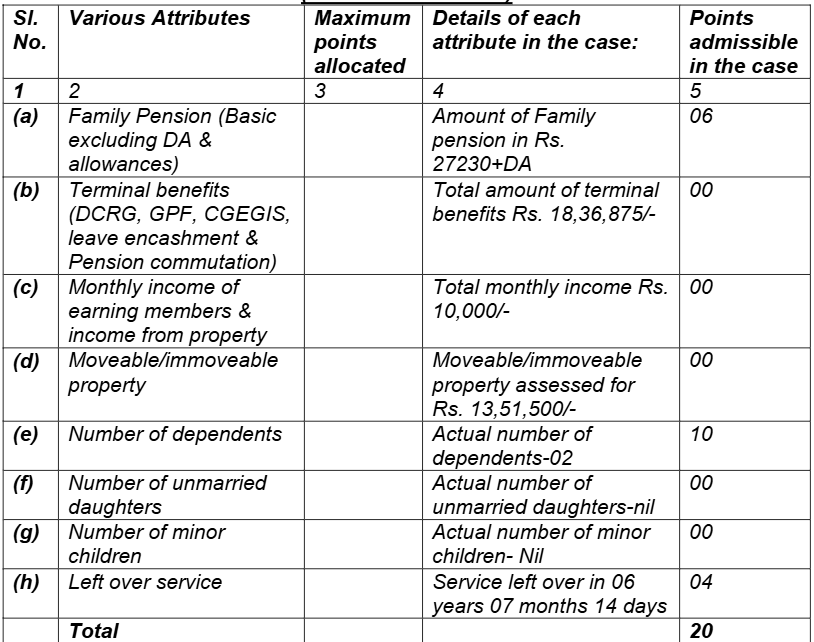 3. Briefly stated, the facts of the case are that the applicant’s father while working as Sub-Postmaster under the respondents’ department died in harness on 17.10.2014, leaving behind his widow, applicant and one married daughter. Subsequently, applicant preferred an application before the respondent-4 for appointment of the applicant on compassionate appointment on 17.03.2016 along with no objection certificate by other dependant family member(s).