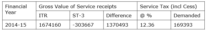 2.2 On the basis of information received from the Income Tax Department for the Financial Year 2014-15 it was observed that appellant had short paid service tax as detailed in table below:-