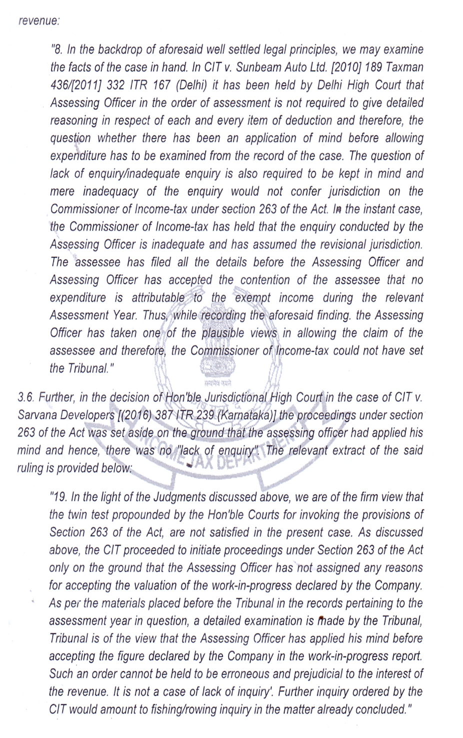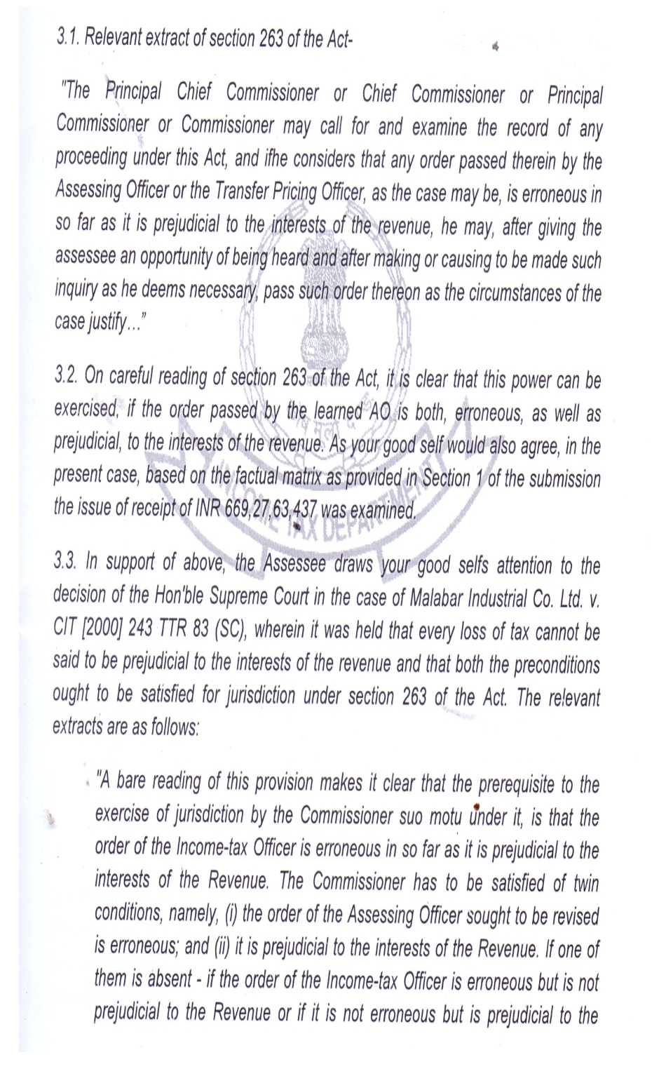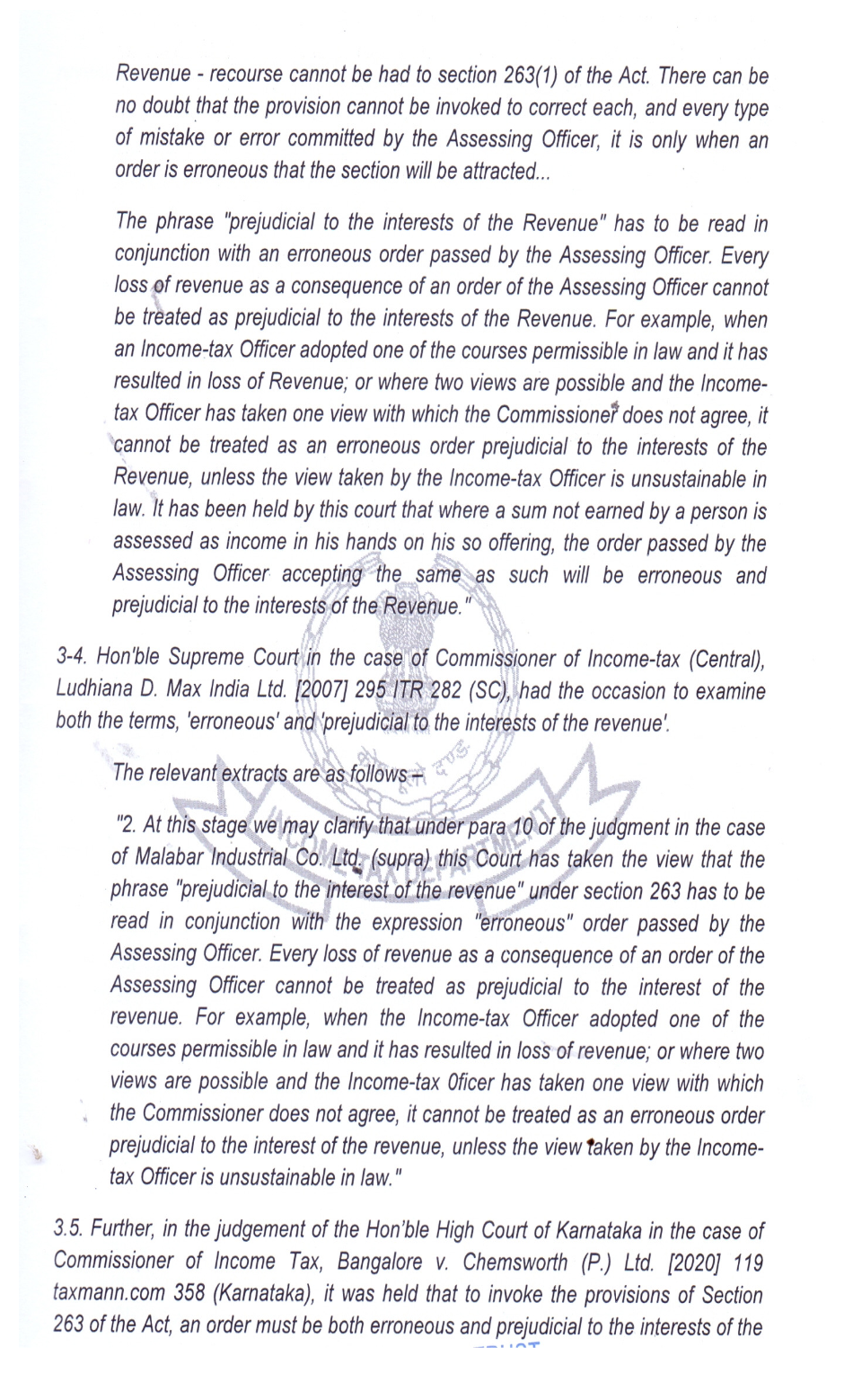 1. The Learned Principal Commissioner of Income Tax, Bengaluru - 2 ('Ld. PCIT') has erred in passing an order of revision under section 263 of the Income-tax Act, 1961 (the Act') which suffers from legal defects such as being passed in violation of the provisions of the Act and is devoid of merits and is contrary to the facts on record and applicable law and as such liable to be quashed.