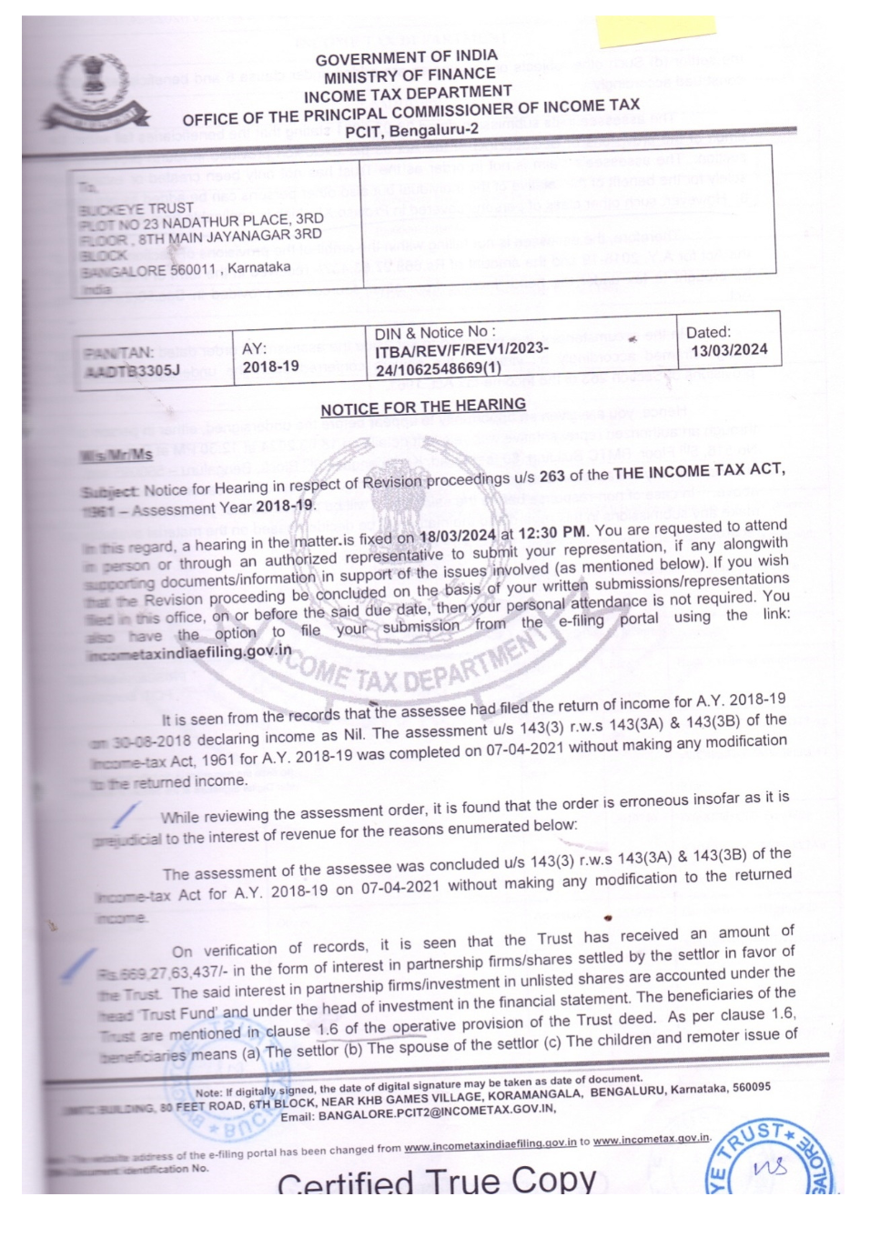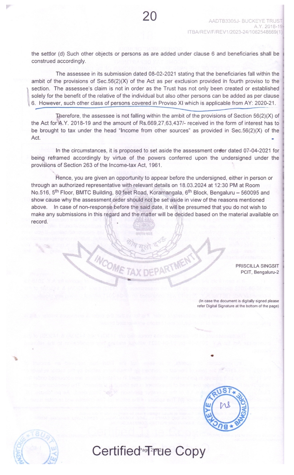 This appeal at the instance of the assessee is directed against the order of ld. PCIT, Bengaluru-2 dated 29/03/2024 vide DIN & Order No. ITBA/REV/F/REV5/2023-24/1063614851(1) passed u/s. 263 of the Income Tax Act, 1961 (in short “the Act”) for the AY 2018-19.