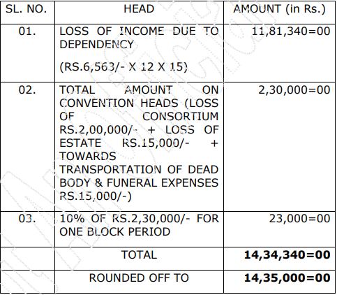 5. It is stated that the deceased Shankaregowda was aged about 32 years. He was doing agriculture and milk vending business and earning Rs.20,000/- per month. The deceased was the only earning member of the family, who used to look after the claimants and the family was depending on his income. In view of the sudden and untimely death of deceased, the claimants have lost their son and sole bread earner, love and affection and also mentally and financially. Hence, they filed a claim petition seeking compensation.