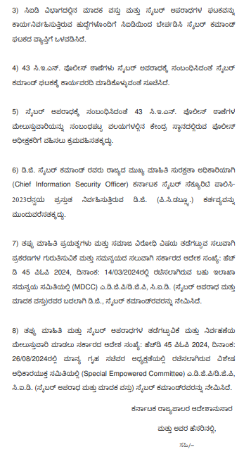 (vi) Copy of this order shall be furnished to, the Chief Secretary, Government of Karnataka; the Principal Secretary, Department of Home Affairs; the Director General and Inspector General of Police, Government of Karnataka, for the implementation of paragraph No.13 of the order.