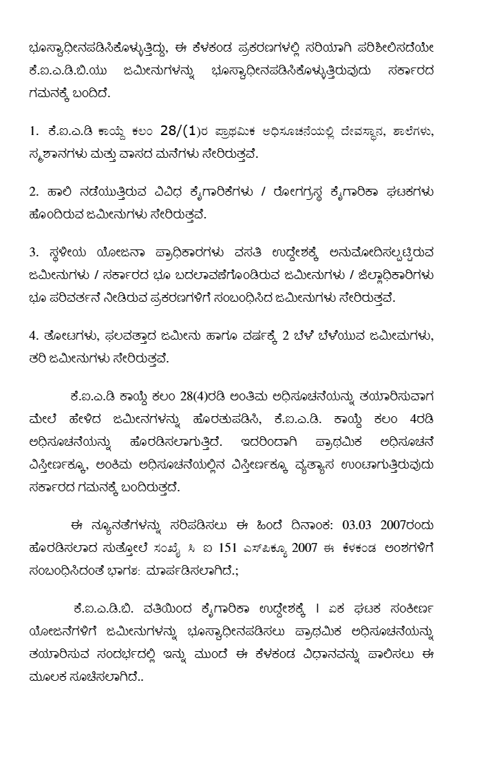Both these petitions, call in question, the notification issued by the Karnataka Industrial Areas Development Board (hereinafter referred to as the ‘Board’ for short) under Sections 28(1) and 28(4) of the Karnataka Industrial Areas Development Act, 1966 (hereinafter referred to as the ‘Act’ for short), insofar as the land of these petitioners, as described in the respective petitions.