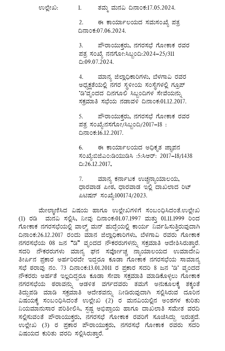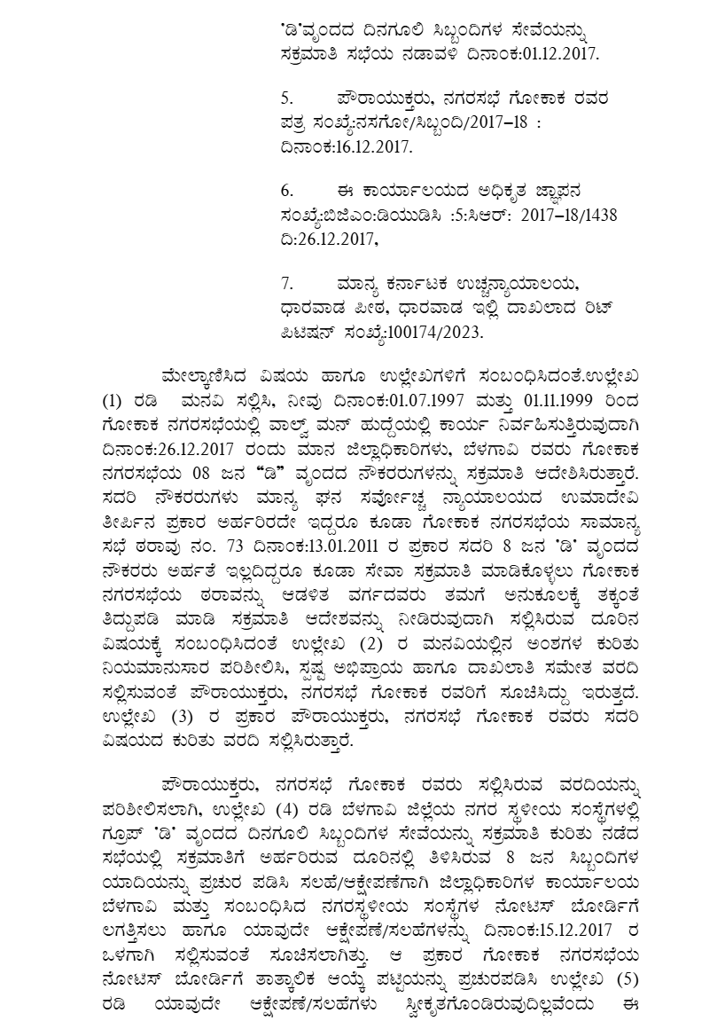 The petitioners in W.P. No.105364/2025 were appointed as Watermen and the petitioner in W.P. No.105664/2025 was appointed as driver on Daily Wage Basis in Gokak City Municipal Council against sanctioned vacant posts. This is an admitted fact.The particulars of appointment of the petitioners are as follows: