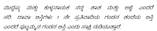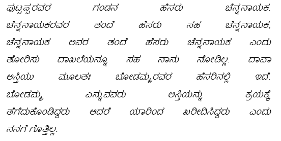 3. In the plaint, it is contended that Chennanaika resident of Gundlupet village and his wife by name Bodamma died long back. They had a daughter by name Muddamma and she had married to one Kullanaika and said Kullanaika is also no more. Couple Kullanaika and Muddamma had two daughters namely Puttamma and Siddamma. Said Puttamma again had two children namely Siddaraju an