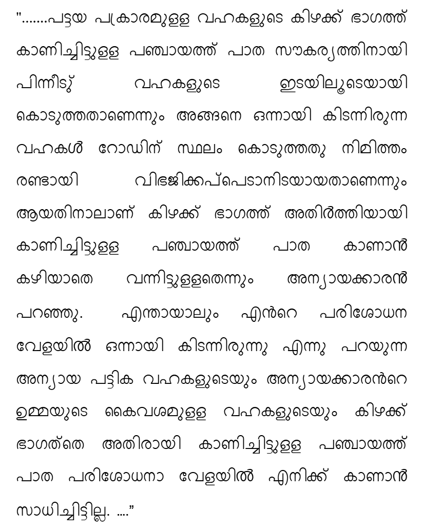 The plaint schedule property was originally held by the plaintiff's father, Abdu, along with the other properties on leasehold right, which was subsequently assigned in favour of the plaintiff's mother, Pathumma, by Deed No.4256/1975 of SRO, Mannarkkad. Thereafter, Jenmam right of the property was obtained by Pathumma from Land Tribunal, Mannarkkad as per Purchase Certificate No.164/94. Later, by gift deed No.1445/2004 of SRO, Mannarkkad, the mother of the plaintiff transferred the right title and interest over the plaint schedule property in favour of the plaintiff and thus he is in possession of the property. Defendants 1 to 3 are having properties on the eastern side of the plaint schedule property. On the northern side of the plaintiff's m