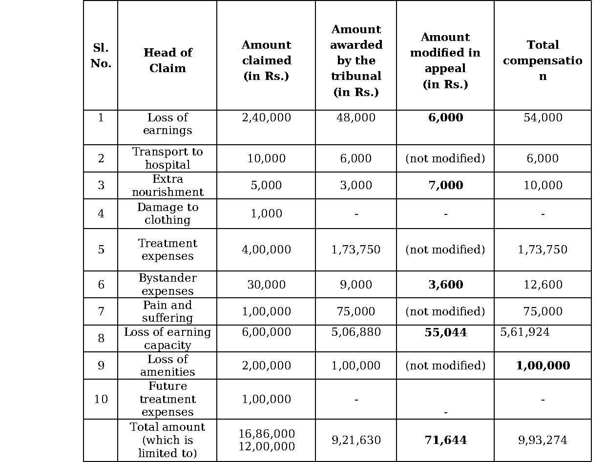 2. Brief facts of the case are as follows: On 06.10.2013, at about 8.00 a.m., while the claimant was attempting to cross the road, a stage carriage bus bearing registration No.KL-34/B- 9599 hit on the claimant and as a result, he sustained serious injuries. The claimant approached the tribunal claiming a total compensation of ₹12,00,000/-.