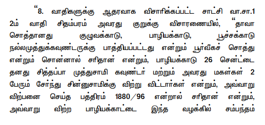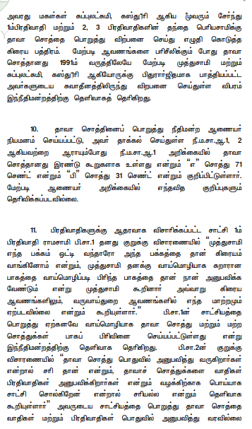 2. The learned Counsel for the Appellants Mr.N.Manokaran submitted that the Appellants herein were the Defendants in the Suit in O.S.No.40 of 2008 on the file of the learned I Additional District Munsif, Erode. The Suit property originally belonged to the paternal grandfather of the Plaintiffs viz., Nallamuthu Gounder . Nallamuthu Gounder had two sons viz., Kulanthaisamy and Muthusamy. The said Kulanthaisamy had two sons viz., Rangasamy and Chidambaram/Plaintiffs. The Plaintiffs' paternal grandfather died intestate. The suit properties are the ancestral properties of the Plaintiffs. The Plaintiffs' paternal uncle viz., Muthusamy Gounder had two daughters viz., Subbulakshmi and Kasthuri. They had sold the property to Ramasamy and Periyasamy. The sale deeds were marked during trial as Ex.B-2 and Ex.B-3, dated 08.08.1991.