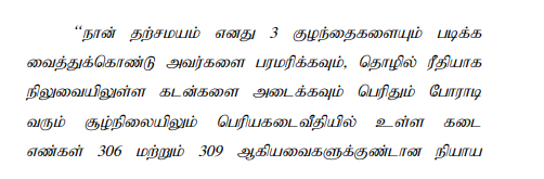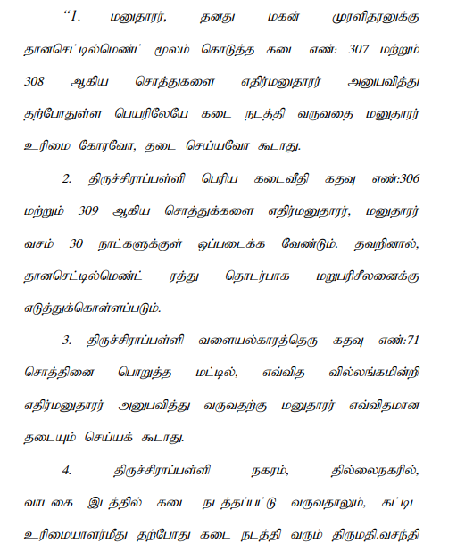 3. The 3rd respondent had invoked the provisions of Section 4 of the Act by filing an application before the 2nd respondent. It was his contention that on 01.10.1979 there was a partition between him, his father and brothers and thereafter, he had out of his own earning, started a business in the name and style of “M.Muniyapillai Grocery and Native Medicine Shop” at Big Bazaar Street, Trichy nearly 40 years back. He had also started the Muniya