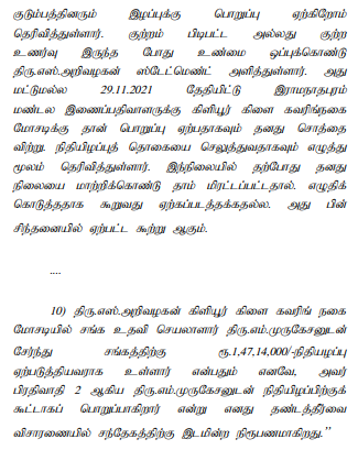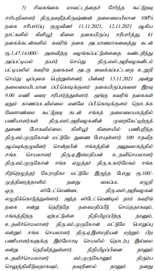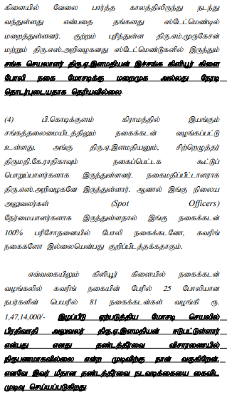 2. The petitioner is arrayed as A1. There are three accused in this case. It is the case of the prosecution that the defacto complainant, the Deputy Registrar of Co-operative Societies, Ramanathapuram, lodged a complaint stating that the Kiliyur Branch is under the administrative control of the Kodikulam Primary Agricultural Co-operative Society; that on 11.11.2021 and 12.11.2021, a jewel verification was conducted and, on such verification, it was found that out of 313 gold bags, 81 gold bags contained fake gold, the value of which was Rs.1,47,14,000/-; and that the said bags were under the control of one Murugesan, who was working as Assistant Secretary-cum-Manager, one Arivazhagan, who was working as Jewel Appraiser, and the petitioner, who was working as Secretary-cum- President of the said Society, and that they are jointly responsible for the loss caused to the Society.