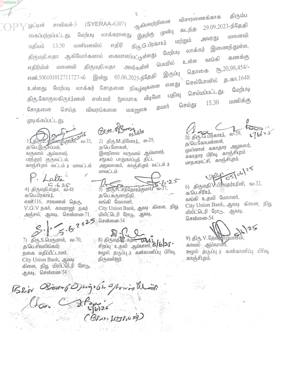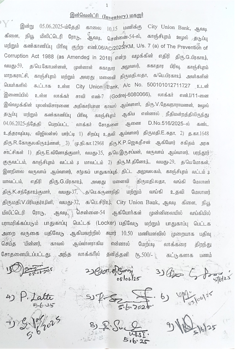 2. The petitioner’s husband, G.Prakash, Sanitary Officer, Health Section, Kancheepuram City Municipal Corporation, Kancheepuram is an accused in Crime No.6 of 2025 for offence under Section 7 (a) of the Prevention of Corruption Act. It is a trap case. Pursuant to the trap, house search conducted on 23.04.2025 and 24.04.2025, following the house search, the locker jointly operated by the petitioner and her husband opened and inventory taken on 05.06.2025. During the course of investigation, the respondent sent a letter to the City Union Bank, Avadi Branch to freeze the joint locker and Bank Account No.500101012711727 of petitioner and her husband. Further directed the bank authorities not to permit the petitioner to operate the bank locker, in which, gold jewels and cash found, against which, the petitioner filed petitions before the trial Court in Crl.M.P.No.182