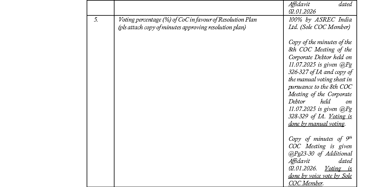 IN CP(IB) No. 384 of 2023 Under Section 30(6) read with Section 31(1) of the Insolvency and Bankruptcy Code, 2016 In the Application of Vishnu Kant Kabra …Resolution Professional/