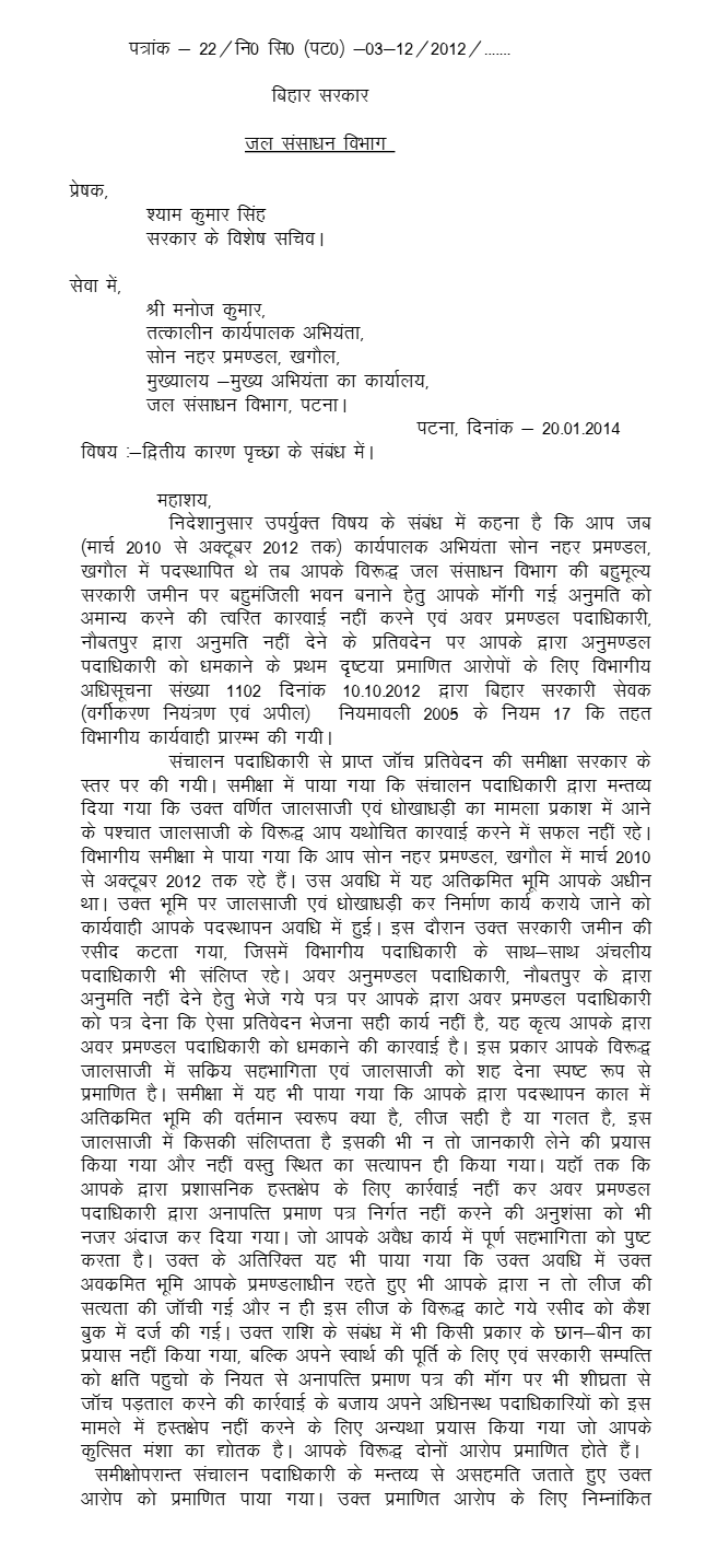 2. The present Letters Patent Appeal has been filed against the oral judgment dated 28.03.2024, as modified by the oral order dated 16.04.2024, passed in CWJC No. 7162 of 2016, whereby the writ petition filed by the writ petitioner–respondent herein has been allowed by quashing the order of punishment dated 22.10.2014 contained in Memo No. 1557, as well as the order dated 10.08.2015 issued by the Additional Secretary, Water Resources Department, Government of Bihar, Patna, contained in Notification No. 1772. The learned Single Judge has further directed the respondent authorities to issue all consequential orders in accordance with law within six weeks from the date of production of a copy of the said order.