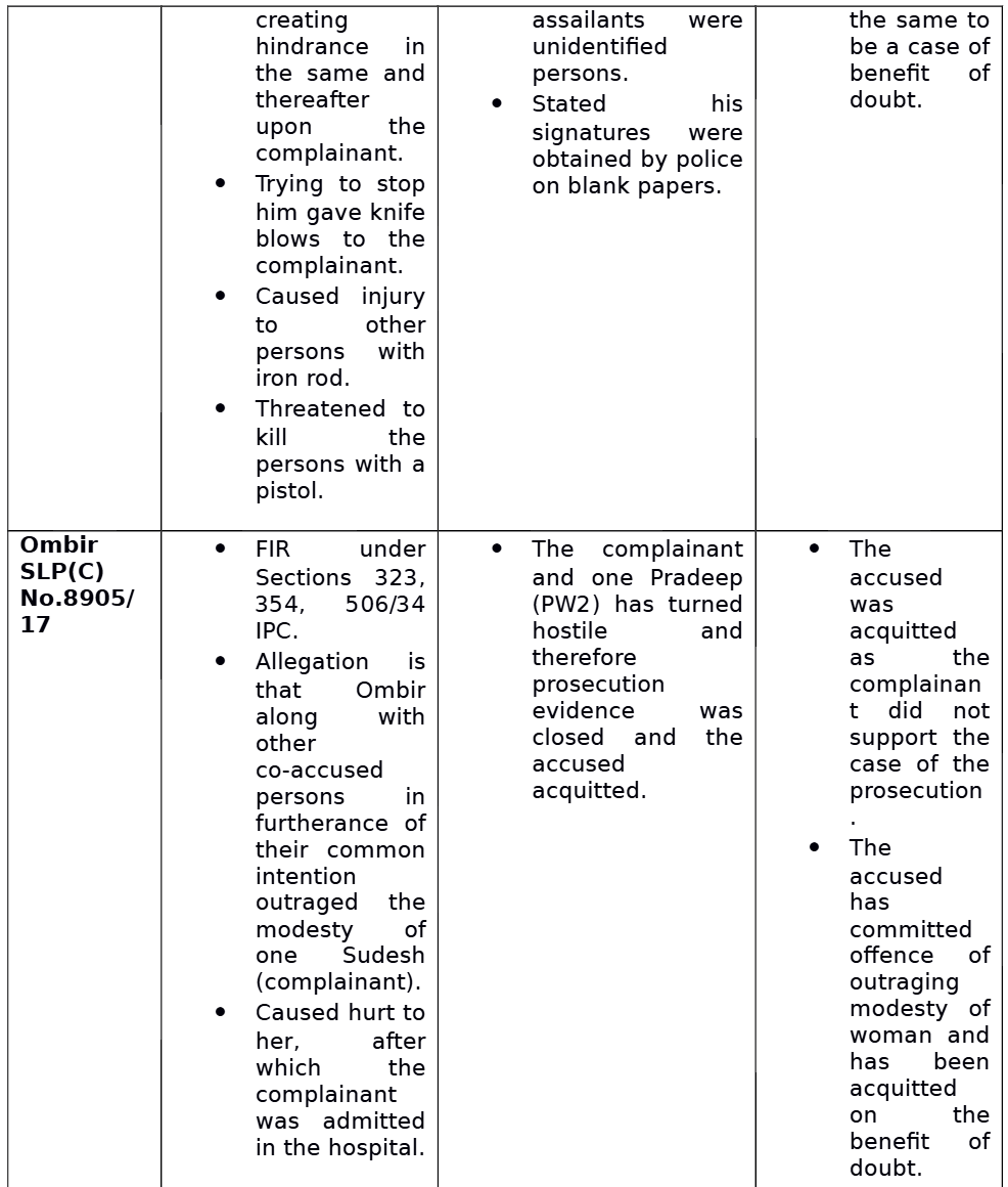 2. The question involved in these appeals is whether the candidature of the respondents who had disclosed their involvement in the criminal cases and also their acquittal could be cancelled by the Screening Committee on the ground that they are not suitable for the post of constable in Chandigarh Police and whether the court can substitute its views for the decision taken by the Screening Committee. Since the facts and issues are almost identical in all these appeals, they were heard together and shall stand disposed of by this common judgment. For convenience, we would deal with the facts in appeal arising out of SLP(C) No. 20750 of 2016