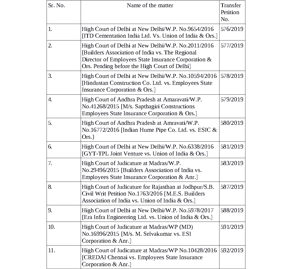 2. It is common ground that three High Courts, namely, High Court of Bombay (Goa Bench), High Court of Madhya Pradesh and High Court of Judicature at Patna have already sustained the validity of the above ESIC Circular, however, petitions have been filed and are pending before some other High Courts which ought to be transferred to this Court for the reason that this Court is already seized of the special leave the Circular has been upheld by the three High Courts, namely, High Court of Bombay (Goa Bench), High Court of Madhya Pradesh and High Court of Judicature at Patna. The special leave petition is pending against the judgment rendered by the High Court of Bombay (Goa Bench).